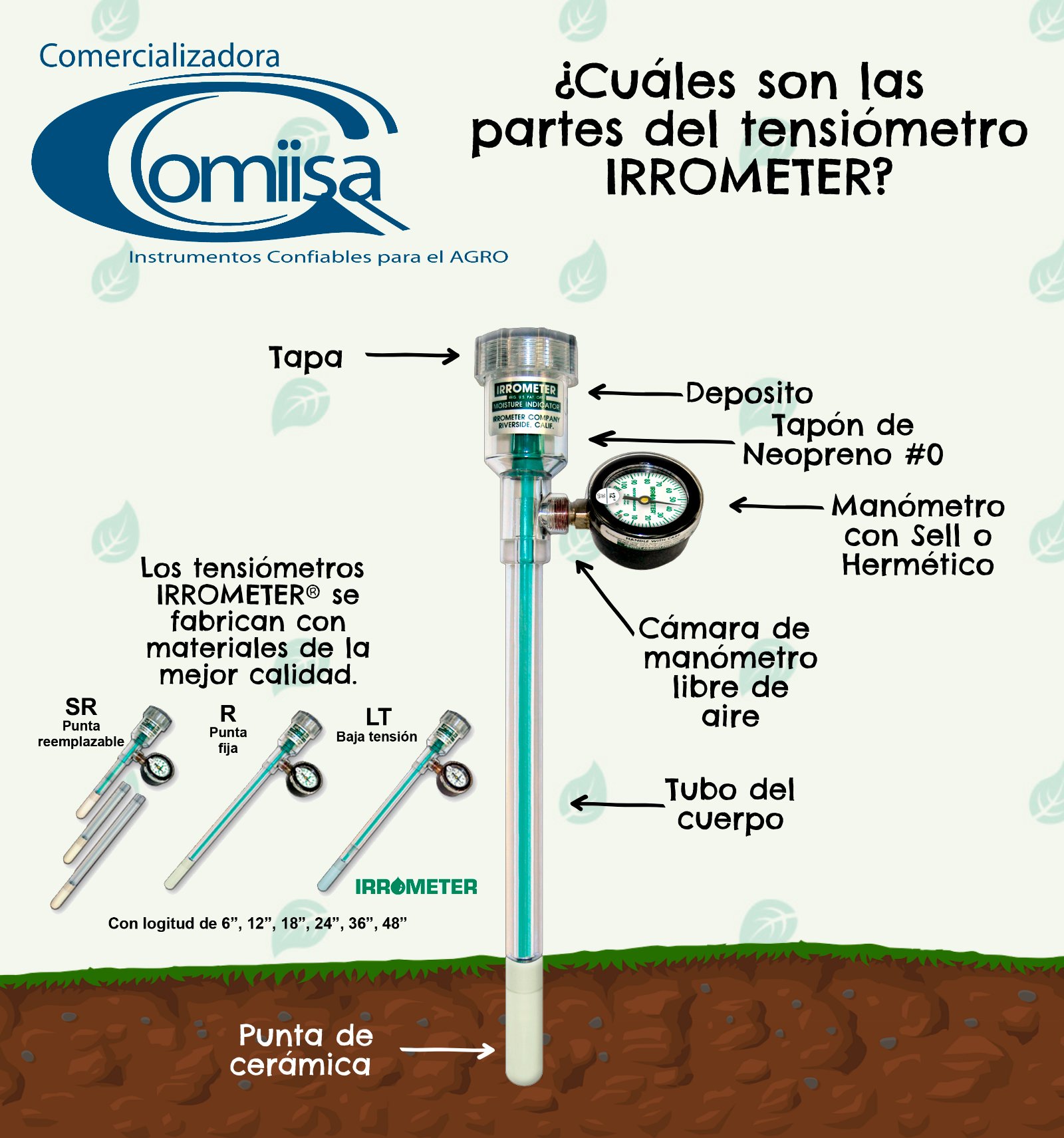 El tensiómetro agrícola es un sensor utilizado en la agricultura para medir el esfuerzo que las raíces deben realizar para extraer la humedad del suelo (Maher, 2019)
